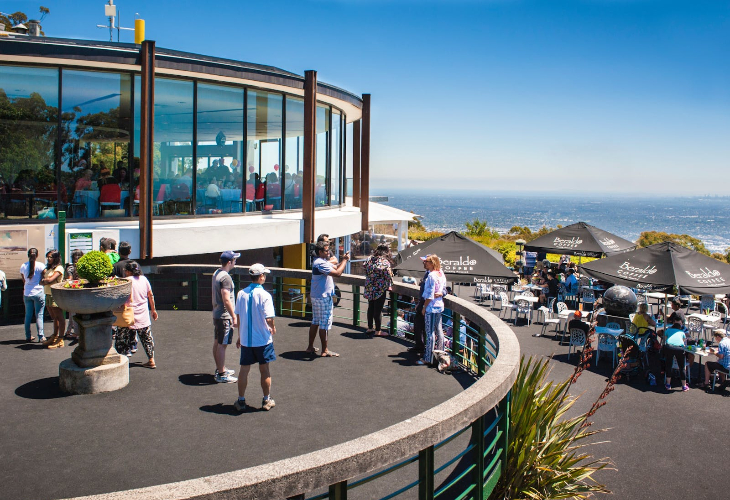 標高633メートルのダンデノン丘陵の最も高い場所から、メルボルンの街並み、ポートフィリップ湾、そして遠くに連なる山々を一望できる、絶景をお楽しみください。