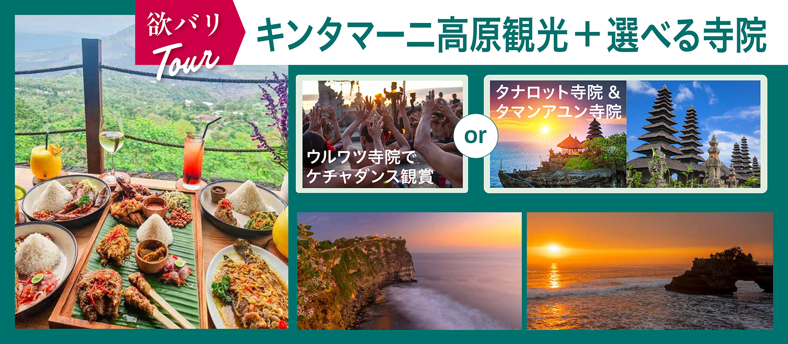 【欲バリツアー③】 日本語ガイド付き キンタマーニ高原観光ランチ付きとウルワツ寺院でケチャダンス観賞(昼食夕食付き)