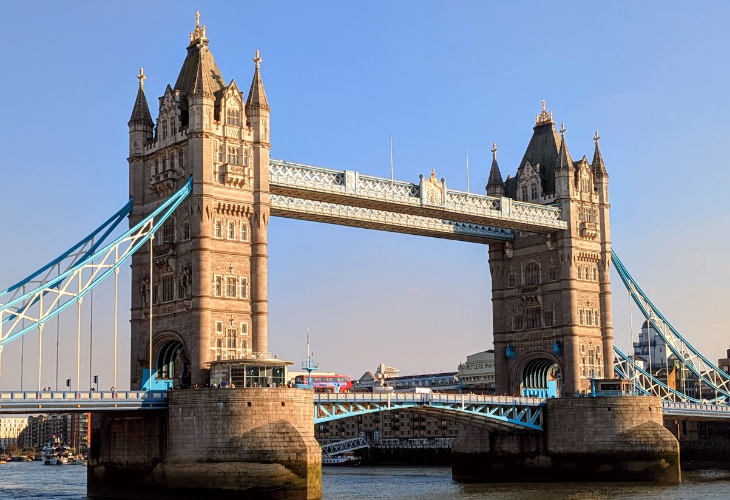 ウエストミンスターからロンドン塔まで、テムズ川ボートクルーズ(約40分間)をお楽しみ下さい。ロンドンはテムズ川を中心に出来た町と言って良い位ですから、両岸には重要な歴史的建造物が並んでいます。オープントップの開放的な座席でテムズの風に吹かれながら歴史のロマンに浸るひとときは最高ですよ。(雨天の場合でも屋内があり、前面ガラス張りですので、景色がきれいに見渡せます。)クライマックスは川面から至近距離で見上げるタワーブリッジ。大迫力です!
