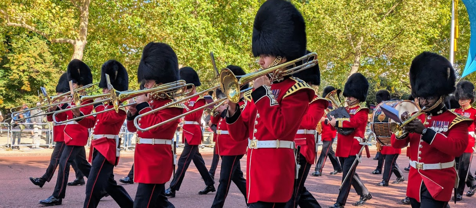 (注意:衛兵交代パレードは雨天中止。基本的に月、水、金、日曜日が実地日となっておりますが、実地されない日や、公式行事で中止になることもございます。衛兵交代の無い日はバッキンガム宮殿公式ショップ又は騎馬兵交代式にご案内いたします)