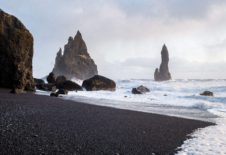力強い大西洋の波が黒い砂浜に打ちつける光景や、巨大な柱状節理と玄武岩の洞窟の姿に息を呑むことでしょう。