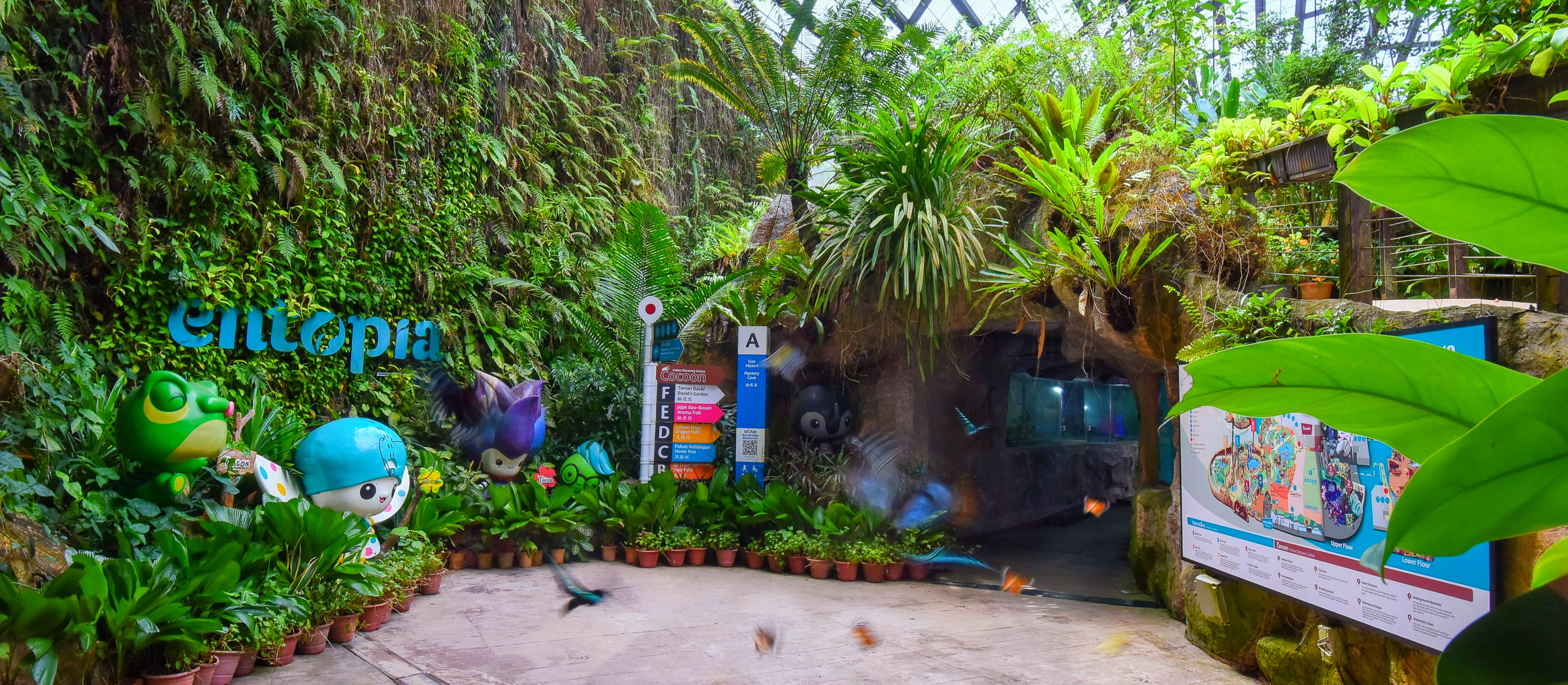 エントピアは、マレーシア・ペナン州のテルクバハンにある自然発見センターで、150種以上の動物と200種以上の植物が展示されています。センター内には、自由に飛び交う蝶が見られる蝶の保護区や、昆虫観察ゾーン、学習ラボなどがあり、さまざまな展示やアトラクションを楽しめます。特に、温室のような広大な施設では、生きた昆虫や自然環境を体験できるインタラクティブな展示が豊富です。家族連れや自然愛好家に人気のスポットで、自然界の美しさと多様性を学ぶことができます。