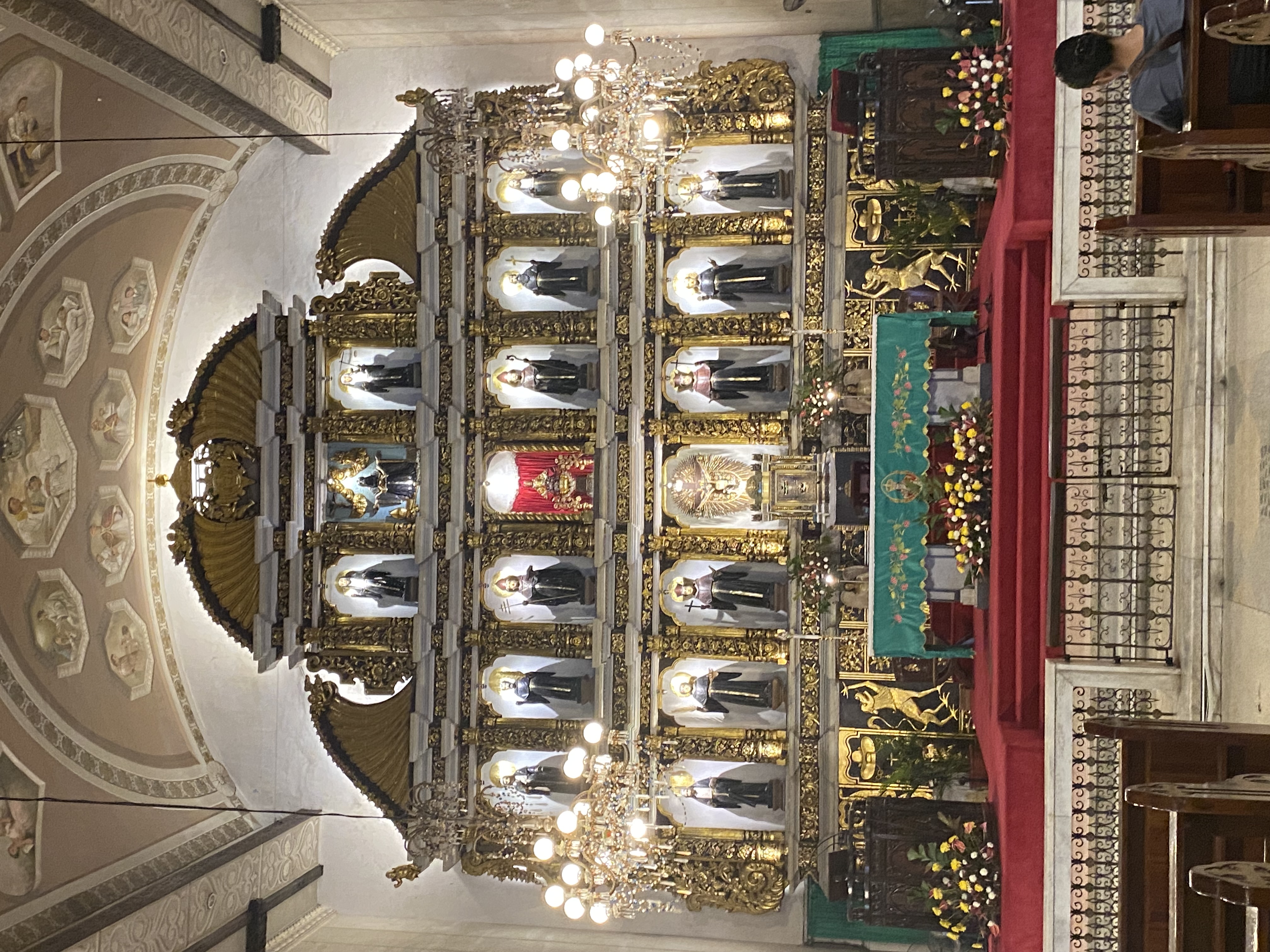 天井からは重厚なシャンデリアが吊り下がり、壁面には宗教的な装飾や絵画が施され、訪れる人の心を打つ神聖な空間が広がる。
