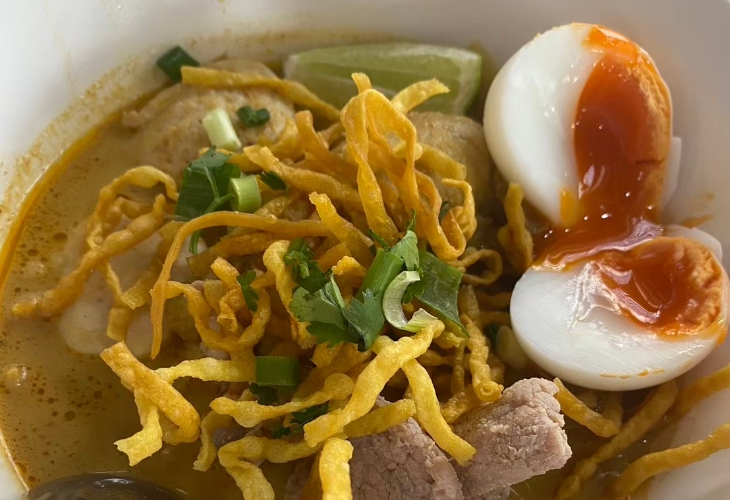 ココナッツミルクのまろやかさとスパイスの香りが絶妙に合わさった、奥深い味わいのスープ。辛さも控えめで食べやすい。