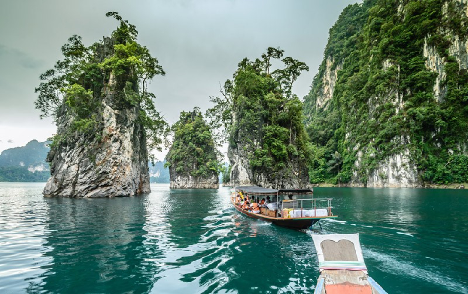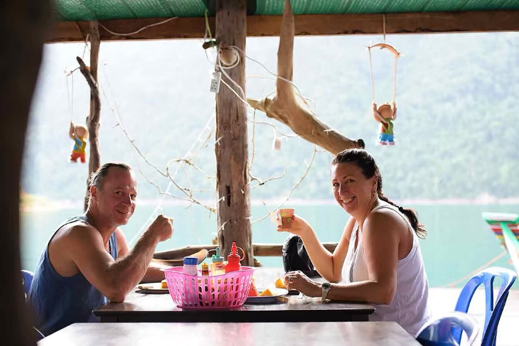 ロングテールボートで帰路につき、途中でチュアオラン湖の絶景ポイントに立ち寄ります。