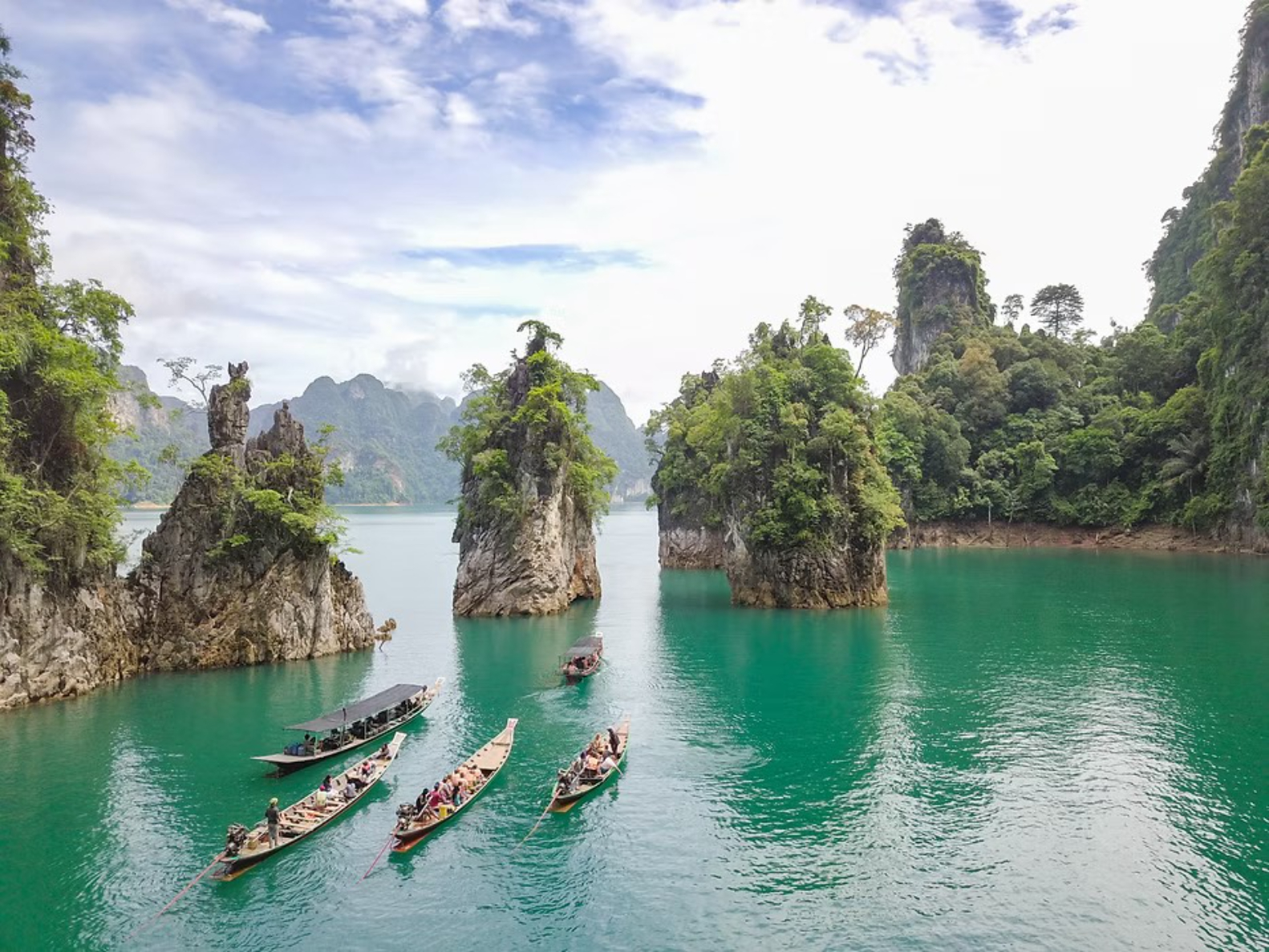 カオラックから日帰りツアーでカオソック国立公園と公園内のチャオラン湖(ラチャプラパーダム)を2時間ほど周遊するクルーズツアーもあります。「タイの桂林」と呼ばれている100を超える小島が連なる景観を船上から堪能できます。バンブーラフティングなどアクティビティも盛りだくさんで、世界最大の花と言われる「ラフレシア」も生息しているので、1月頃から数ヶ月間花の咲く時期にガイド付きのツアーで公園内をトレッキングし、運が良ければつぼみや花を鑑賞することもできます。大自然を心ゆくまで満喫できるお勧めの観光スポットです。(タイ観光省より)