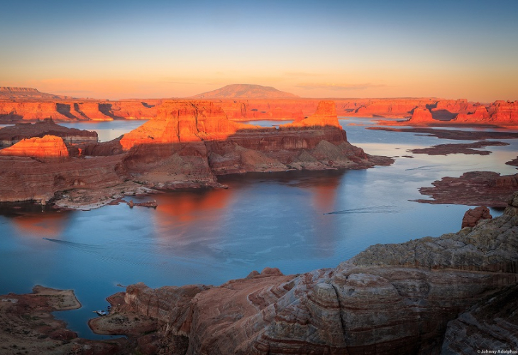 レイクパウエルは、アリゾナ州とユタ州にまたがる巨大な人造湖。 ダム湖として周辺の州の電力・水の供給源になっている一方で、夕日や星空などの景色や、ボートなどを楽しむことのできるリゾート地としても知られています。