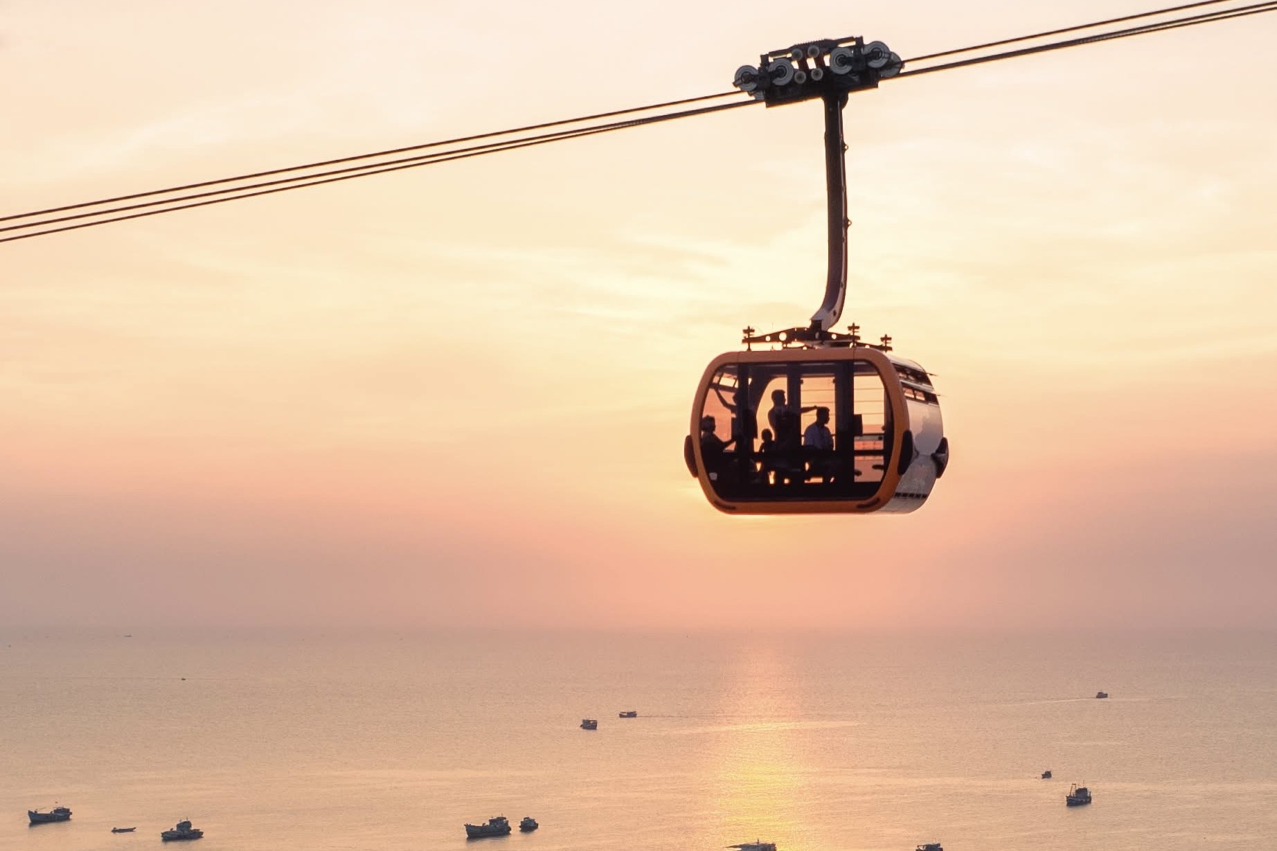 アクアトピアを満喫した後は、フーコックの有名スポット、海上ケーブルカーを利用して本島へ戻ります。全長7,899.9m「世界最長の海上ケーブルカー」としてギネス認定されているケーブルカーはフーコック旅行で欠かせない体験です!