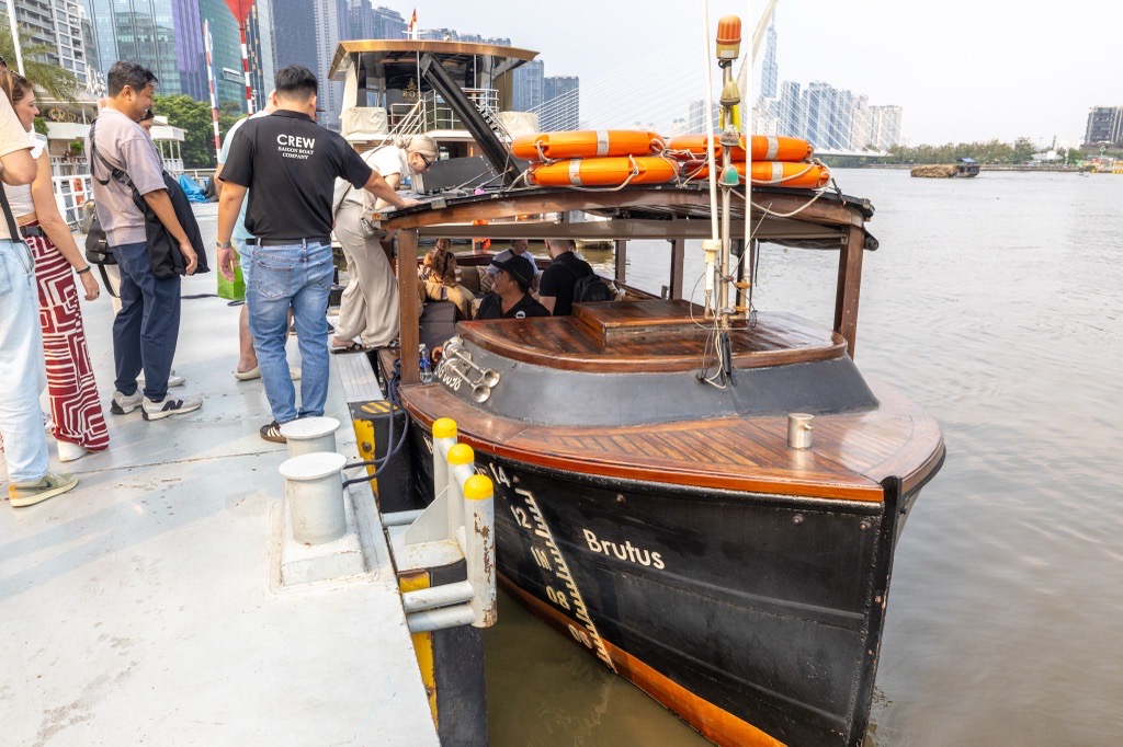 - 1区中心部、チャンフンダオ像の向かいにあるBach Dangボートターミナルの乗船改札にて黒い制服を着た”Saigon Boat Company"のスタッフがお客様のご予約名簿をもとに確認いたします。改札付近にてスタッフにお声がけください。